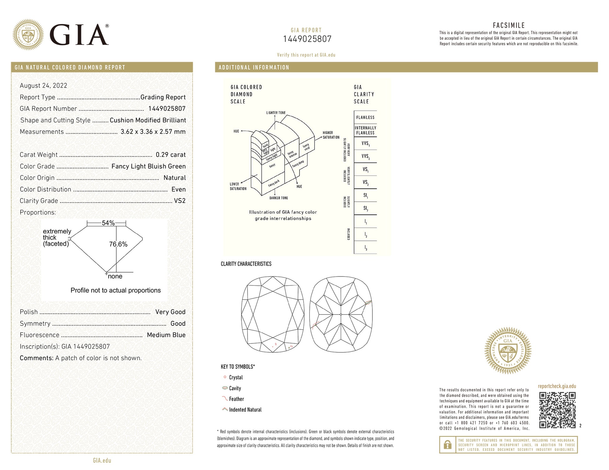 | 鑑定機関 | GIA鑑定書付(GIAレポートNo.1449025807) |
