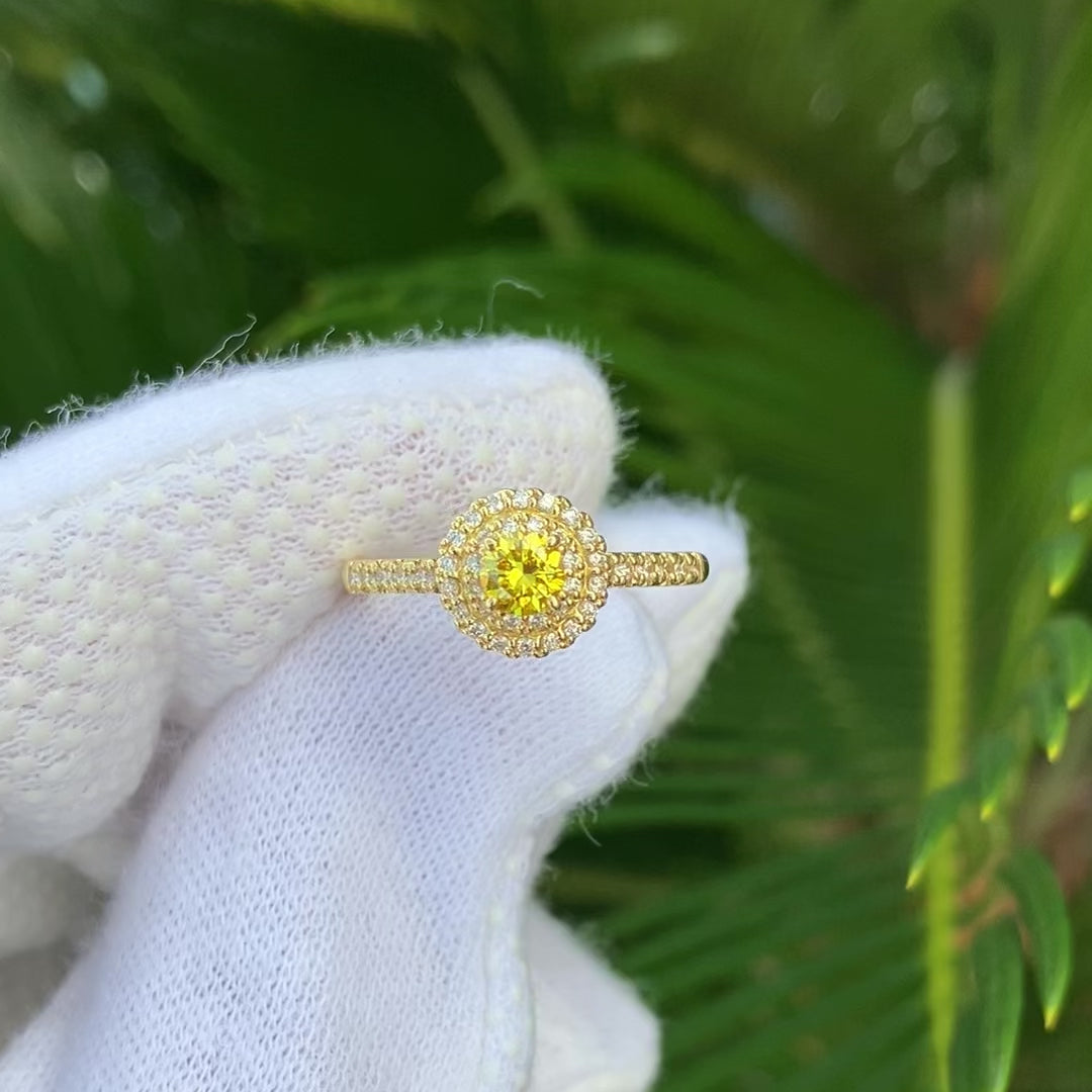 Fancy Vivid Yellow ダイヤモンド 0.274ct メレダイヤモンド 0.251ct /K18YG リング
